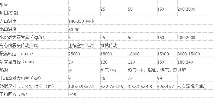 ◎干燥速度快,料液經霧化后表面積大大增加,在熱風氣流中,瞬間就可蒸發95%-98%的水份,完成干燥時間僅需數秒鐘,特別適用于熱敏性物料的干燥。