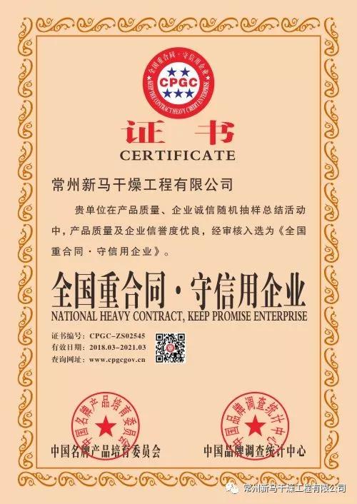 在公司,新馬干燥各級領導高度重視企業誠信建設和企業信譽,有極強的信用責任意識和信用義務觀念,全面打造誠信文化。同時建立合同管理機構,制定合同管理標準制度,專人負責與管理,加強監督,有效提升合同管理與效率履行。此次獲得“重合同守信用企業”榮譽稱號,是對公司一直堅持誠信文化建設工作的鼓勵和肯定,更是新馬干燥形成自己品牌誠信文化的一個里程碑。