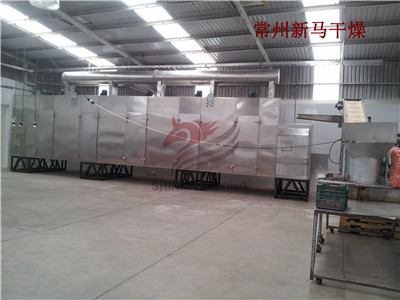 新馬干燥的脫水蔬菜專用干燥機具備高效節能的特點,在穿流加熱、分層進風、分段變溫干燥、余熱回收等方面具有國內領先水平 (可參見江蘇省質監局出具的《檢測報告》)。其采用的多層移動式特種網帶,熱氣流自下而上穿過網帶及其上的物料層,熱交換均勻、充分、生產效率高、產品質量好,出料溫度低,利于及時包裝。