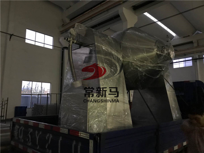 上海某知名醫(yī)藥公司采購的用于醫(yī)藥原料藥干燥的SZG-1000雙錐回轉真空干燥機:內部搪瓷、鈦材抽真空系統(tǒng)、齒輪緊密傳動、機械密封機構,高標準高要求,也已整裝待發(fā):