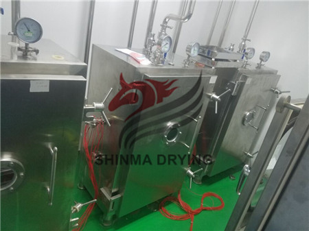 板式真空干燥機特別適用于浸膏類低溫真空干燥的需要,箱體內設計由單個板狀的烘干單元水平疊加的形式,在兩個烘干單元之間有用于烘干物料的合理間隙,每個烘干單元由上下兩片平行的隔板,上下隔板之間的邊沿密封,并且內部形成用于通熱源的空腔。具有結構簡單、換熱面積大,加熱均勻,烘干效果好、效率高等優(yōu)點。所以備受制藥企業(yè)的歡迎。