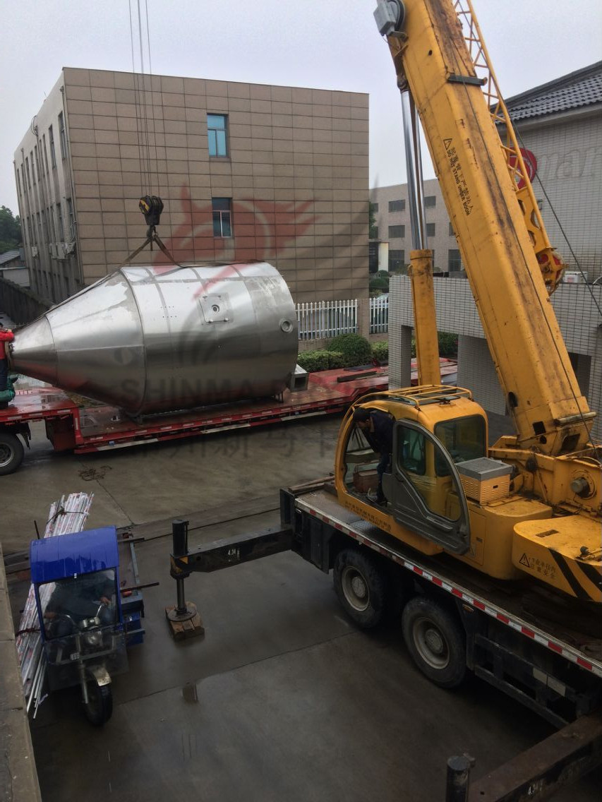 ? 塔徑塔高做了相應(yīng)的調(diào)整,既保證物料干燥之前接觸不到塔壁,又保證物料在熱風(fēng)中的停留時間;塔壁設(shè)有夾套冷風(fēng)冷卻裝置,確保物料吸附在塔壁上因局部溫度過高而產(chǎn)生軟化、熔融甚至焦化現(xiàn)象;錐角增大,錐體上安裝空氣震擊器,用壓縮空氣脈沖式振擊筒體,把吸附在筒體上的粉料順暢地?fù)袈湎聛恚?/span>