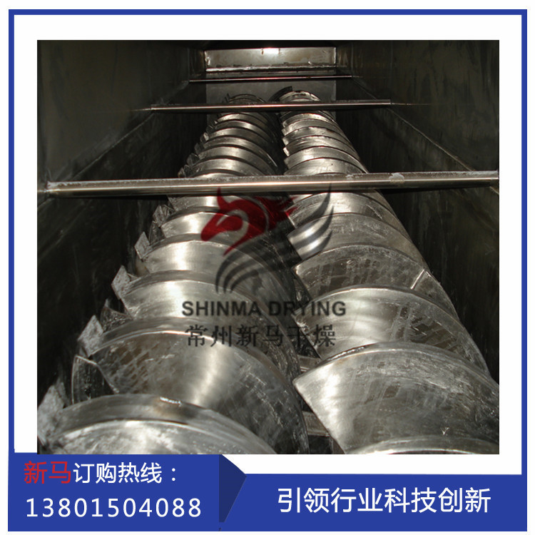 該槳葉干燥機適用于處理各種膏糊狀,粒狀粉狀等熱穩定性好的物料,在特殊條件下也可干燥熱敏性物料及在干燥過程中回收溶劑。加熱介質可采用蒸汽、熱水、熱油等。典型干燥物料有:污泥、炭黑、碳酸鈣、石膏、粘土、尼龍和聚脂切片、聚已烯、聚丙烯等。